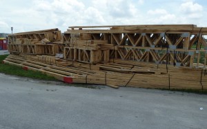 A floor structure supports the weight of the occupants, furniture and items in the home. The first floor structure of many single family homes consist of a concrete slab on grade, prefabricated wood trusses, or framed with sawn or engineered lumber. The second floor of many two-story single family homes are constructed with hand framed wood members or prefabricated wood trusses. Trusses are also very commonly used for roof structures, which are covered in the prefabricated wood truss roof structure section.