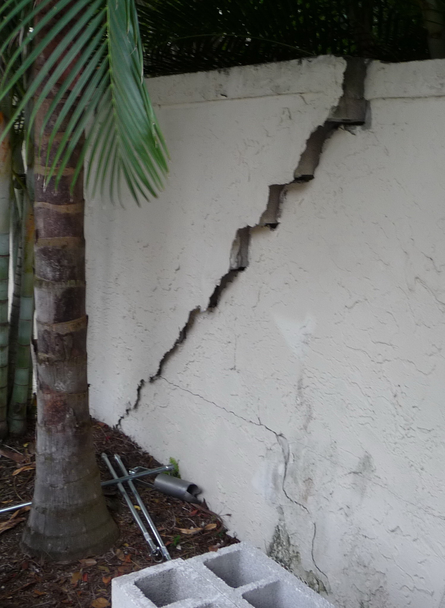 The following photograph shows significant settlement cracks at the corner of a CMU building: